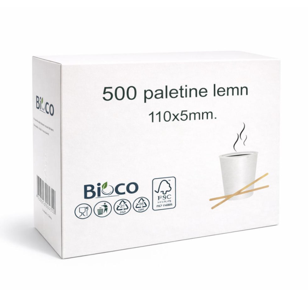 Paletinele din lemn Bioco, cu lungimea de 11 cm, sunt special concepute pentru pahare mici de cafea, espresso și băuturi servite prin automate vending. Setul conține 500 de bucăți, fiind o soluție economică și eficientă pentru consum profesional în cafenele, hoteluri, birouri sau spații comerciale.