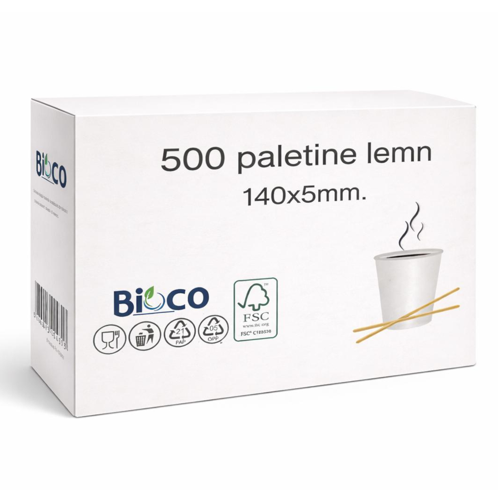 Paletinele din lemn Bioco, cu lungimea de 14 cm, sunt concepute pentru amestecarea eficientă a cafelei, ceaiului și altor băuturi calde. Setul conține 500 de bucăți, fiind o soluție practică și economică pentru cafenele, birouri, automate vending, zone de self-service sau evenimente.